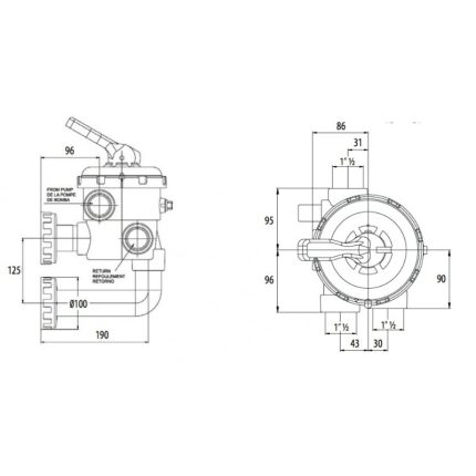 Válvula de piscina de montaje lateral, multipuerto de 1 1/2″ PLANA ASTRAL