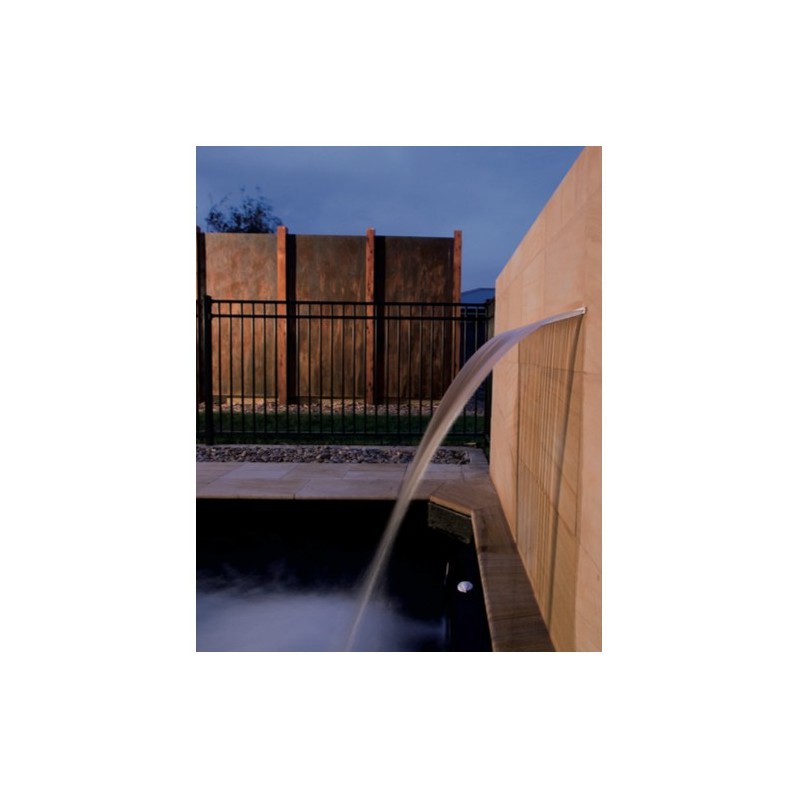Sea cual sea el tamaño de su piscina, la cascada Silkflow se adaptará perfectamente, gracias a los diferentes anchos disponibles. La forma de la salida crea una cortina de agua con una hermosa curva que termina en la piscina. Se puede instalar en el circuito de filtración existente o alimentarse con una bomba específica (consulte la tabla en la imagen a continuación para determinar la potencia de la bomba requerida).