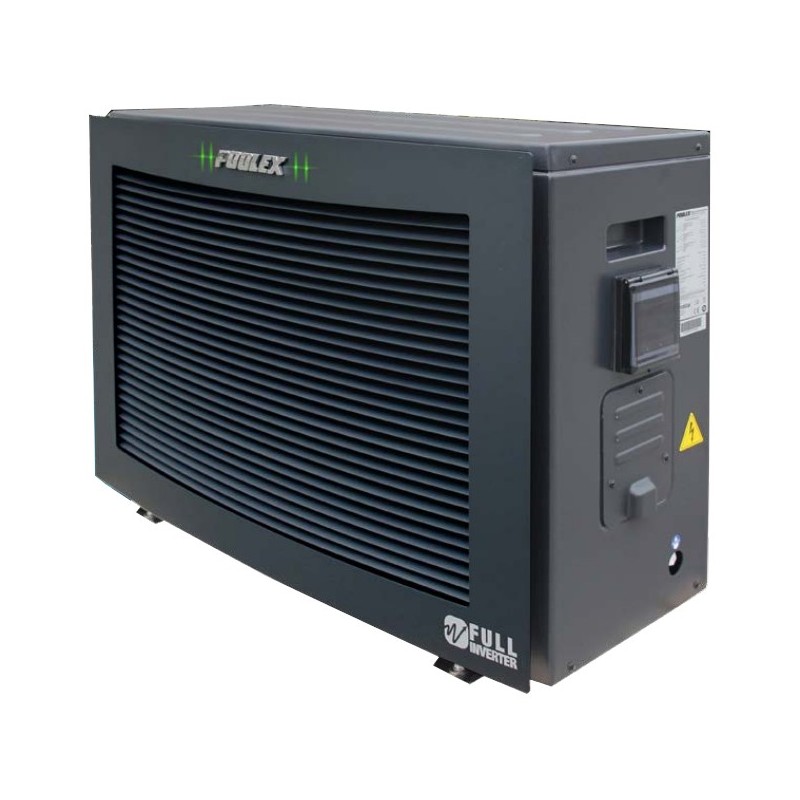 La tecnología FI permite ajustar la potencia según las limitaciones climáticas, como la descongelación. Limpieza automática de la piscina mediante inversión de ciclo. Cuenta con un compresor de alto rendimiento, un ventilador de velocidad variable, todo conectado a un intercambiador de calor de titanio retorcido de doble espiral para obtener resultados sorprendentes.