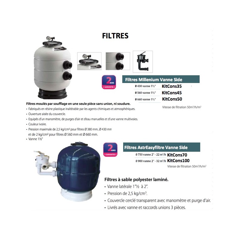- 1 x Filtro AstrEasyfilter 750 mm (VÁLVULA LATERAL máx. 22 m3/H)