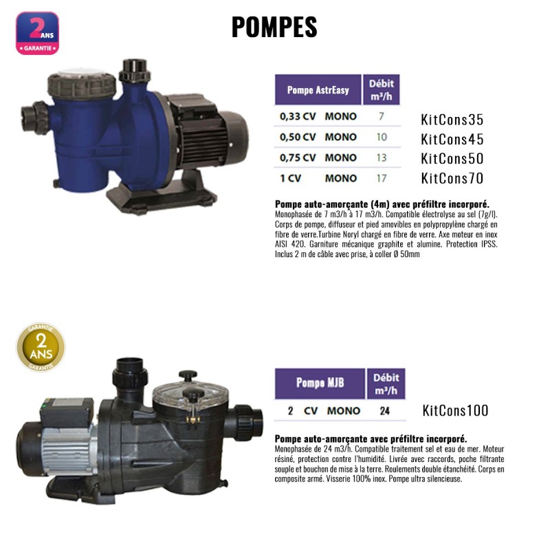 - 1 x Bomba AstrEasy 10 m3/H, 1/2 CV mono (compatible con electrólisis)