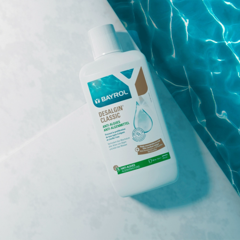 Opte por Bayrol Desalgin Classic Antialgas y Clarificador de Agua, ¡previene la proliferación de todo tipo de algas y clarifica el agua!