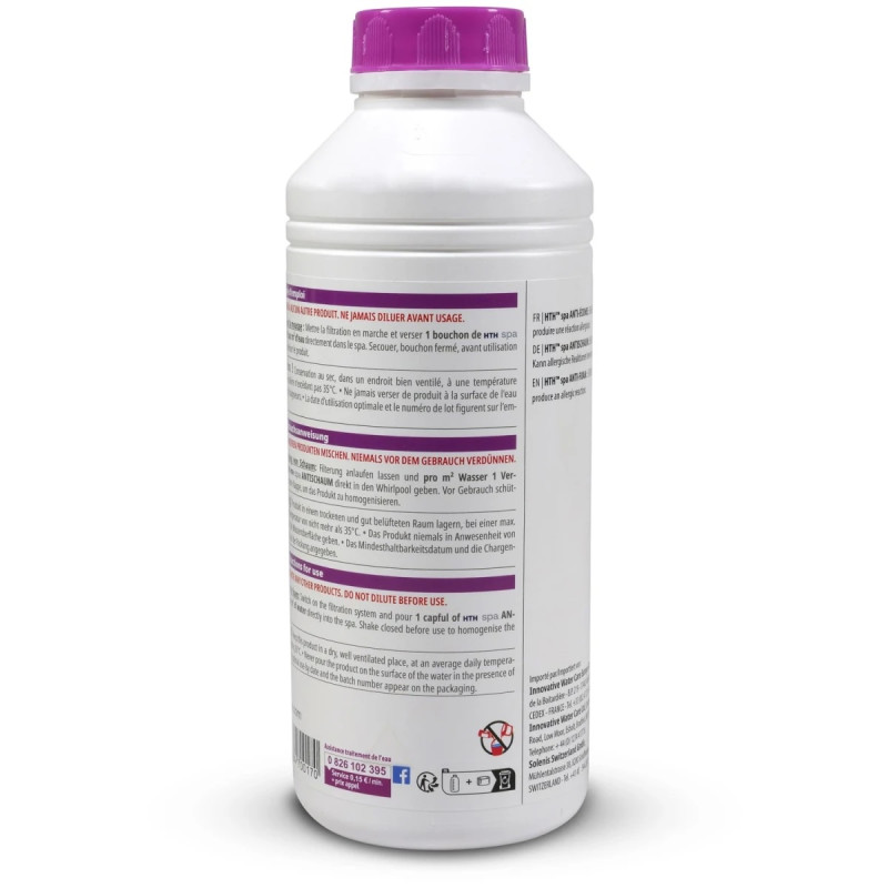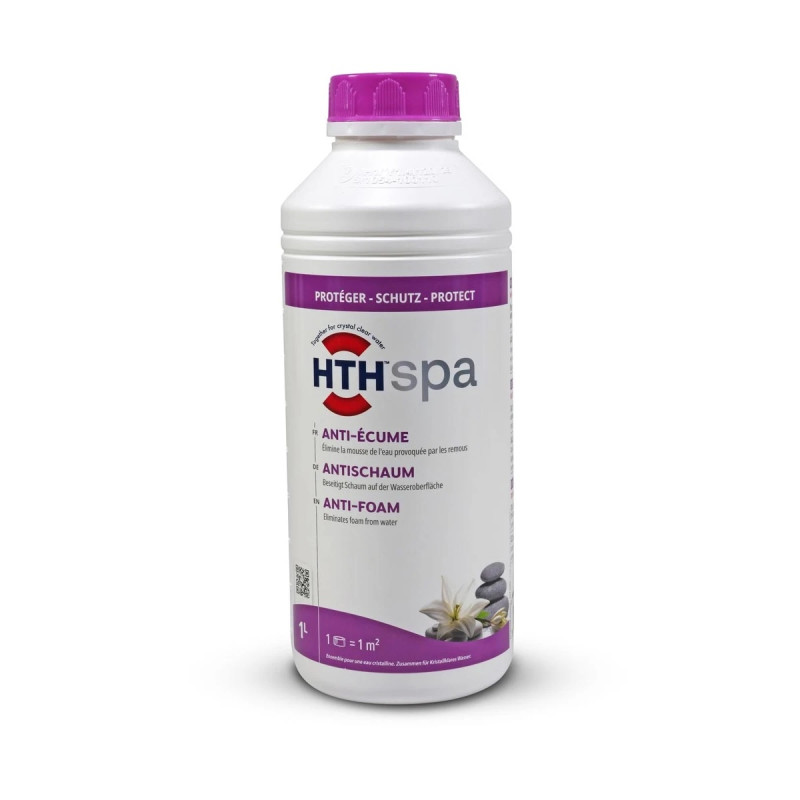 De acción muy rápida, hth Spa antiespumante permanece eficaz a bajas concentraciones e independientemente del pH del agua tratada.